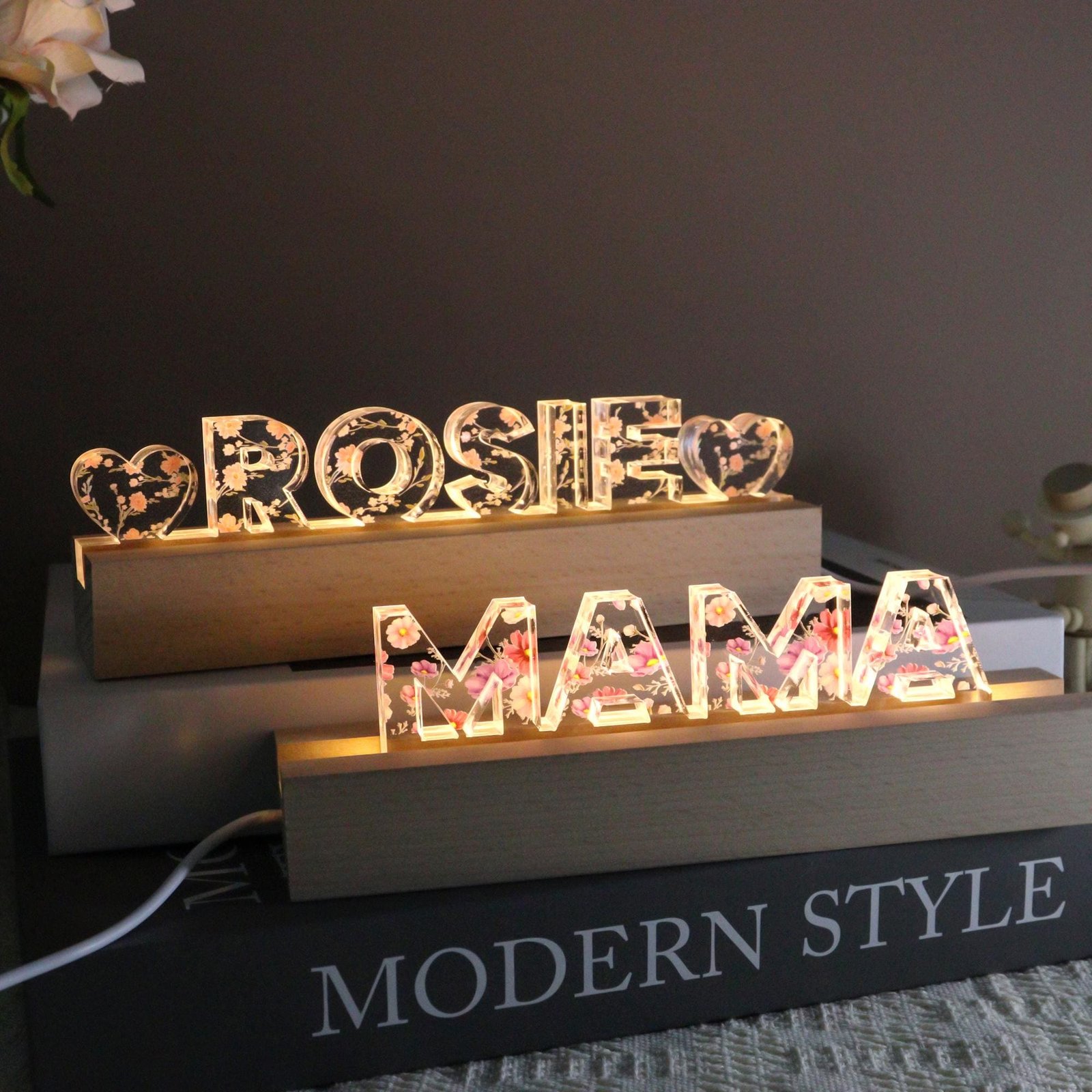 Personalized Flower Night Light Gift for Mom