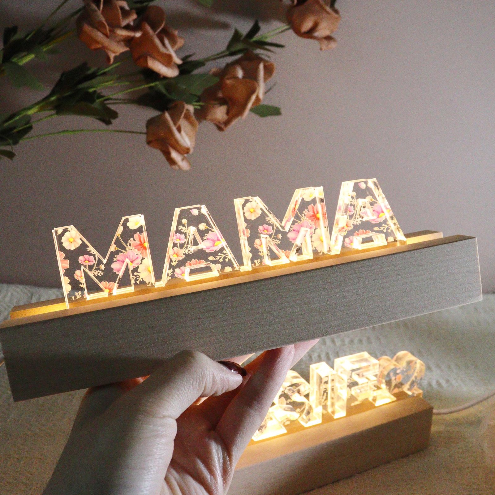 • 🌼 Fully Customizable Design Add your mom’s name, a short message, or a special date to the floral night light. Whether it’s “Best Mom Ever” or simply “Mom,” every engraving makes it uniquely hers.