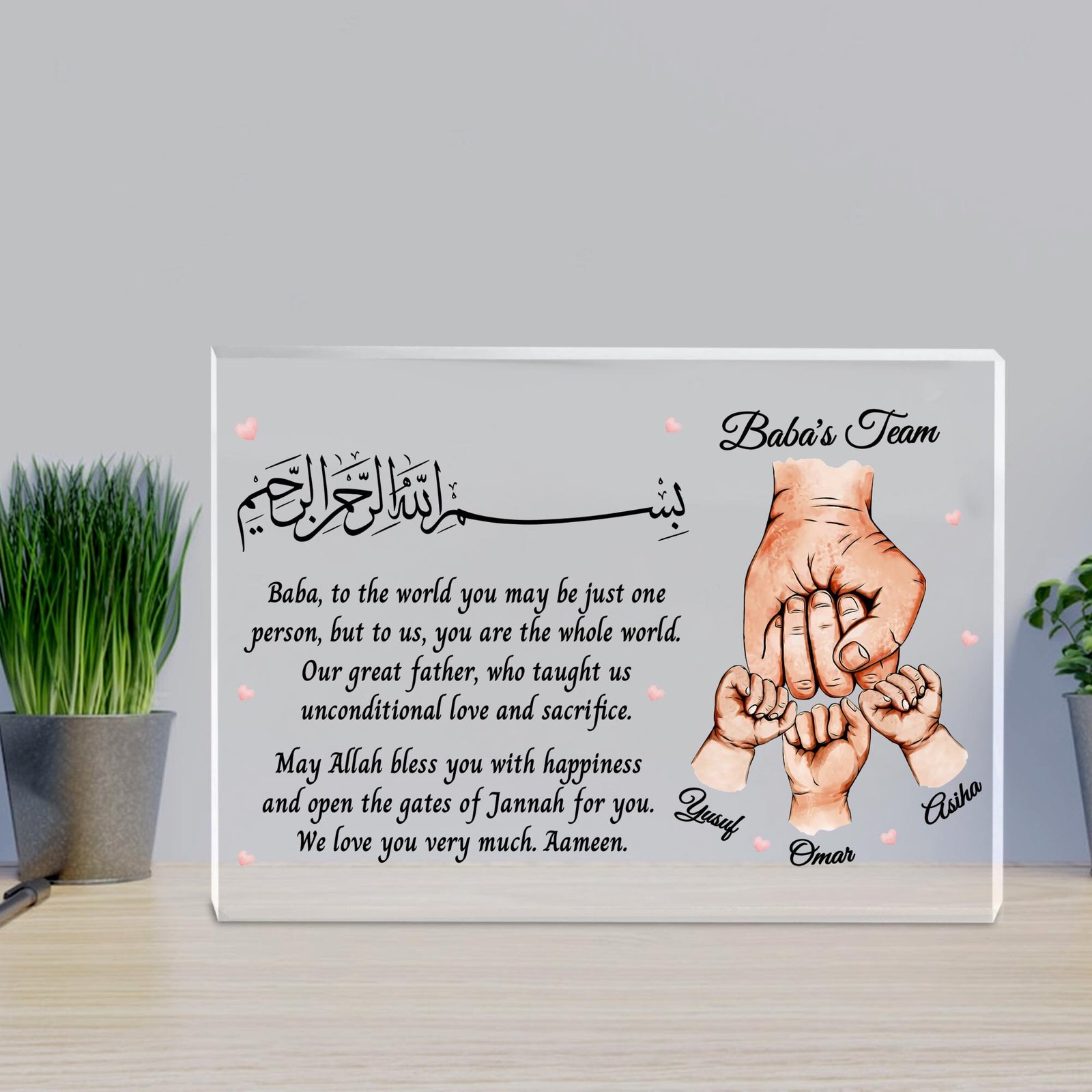 Personalized Islamic Dad Acrylic Block, Parents Gift, Father’s Day Gift For Muslim Dad, Islamic Gifts For Him, Islamic Dad Gift, Eid Gift Whether it’s to honor your dad on Eid or show your gratitude on Father’s Day, this personalized acrylic block is a beautiful reflection of love, respect, and Islamic values.